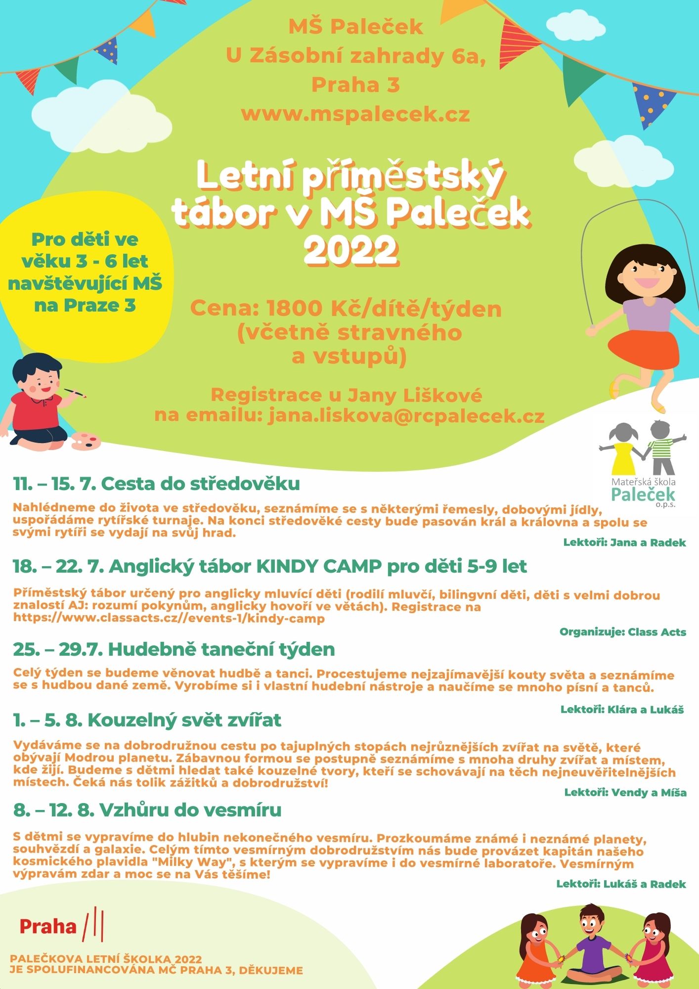 Název projektu: Letní příměstský tábor v MŠ Paleček 2022