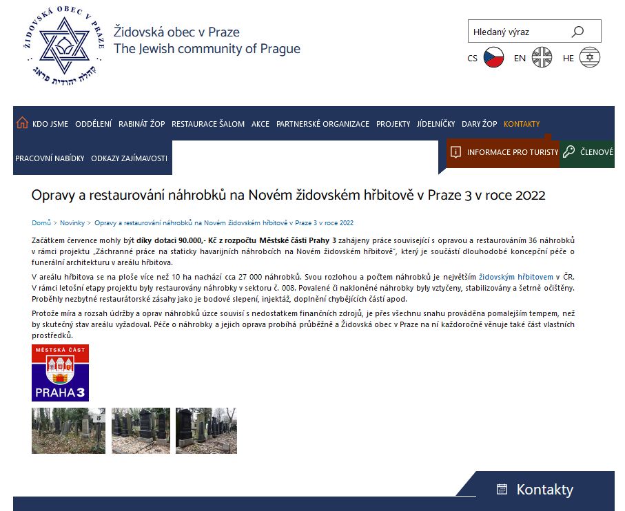 Název projektu: Provedení záchraných prací na staticky havarijních náhrobcích na Novém židovském hřbitově